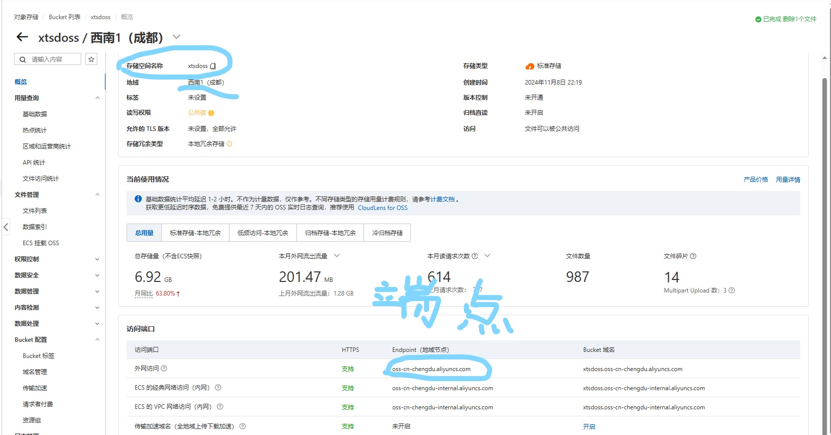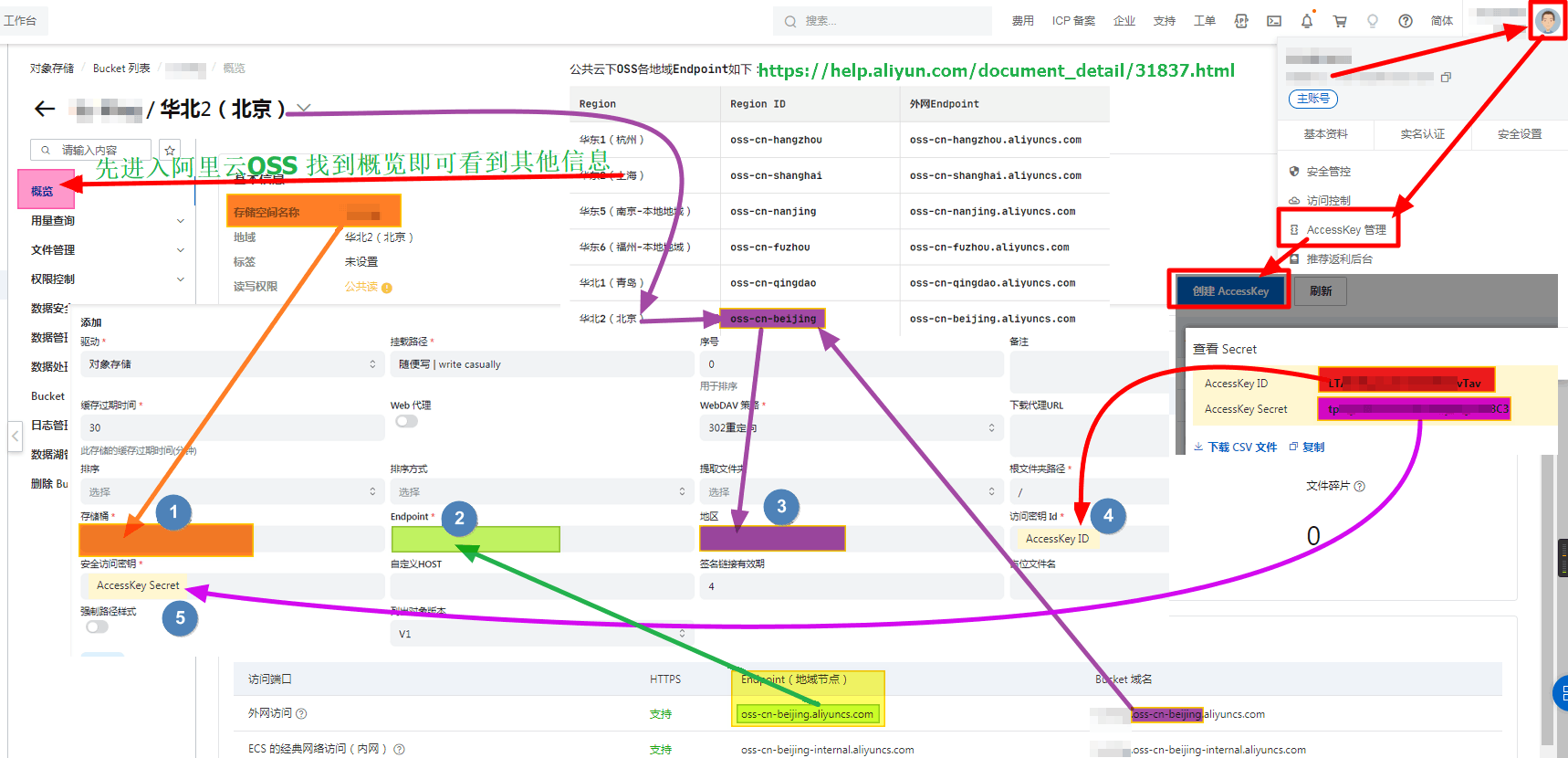 访问密id和访问密钥就是我们申请AccessKey ID和AccessKey Secret